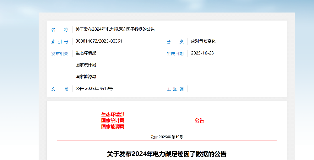 生態環境部 關于發布2024年電力碳足跡因子數據的公告